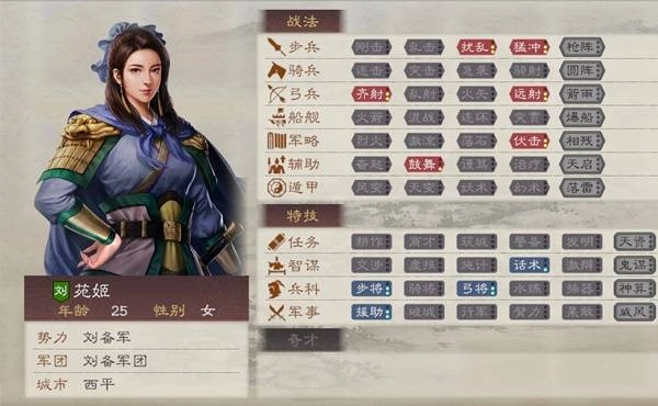 魅力型的老婆,特技和战法都有一定作用,但水平也就一般般。