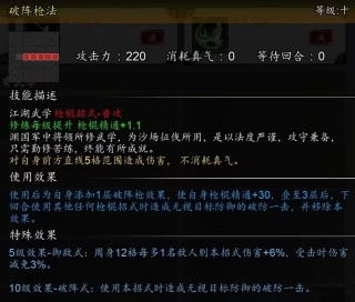 高贵的破防伤害,每累计打3次下回合任何枪棍都能打破防伤害,玩家满血被秒的【玉龙百式】可能就是有这个加成。