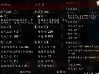除了【玉龙枪】和【皓虎战衣】,还有【飘雪履】、【素麟金面】以及【桓王军令】