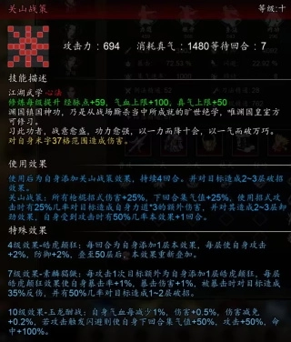 【关山战策】:使用技能下回合集气值加25%;攻击触发闪避下回合集气值加50%