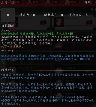 在后期的关键战斗中,五恒心经是除天极三垣炁外唯二需要开启的核心心法。由于【三垣炁】在人群密集处容易失效,此时选择【五恒天经】更为稳妥。尽管它的综合效果偏向中庸,进攻能力与保命效果均不及【天极三垣炁】,但胜在稳定性极佳。