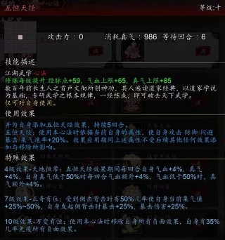 南疆主线后期必带的心法,但是在乘黄五恒试炼后就不用带了,因为有更好的选择,【五恒天经】。
