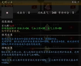 这两个是前期给队友通用的两个心法,【玄阳离火功】要到主线天佛窟之战的末尾才能获取,【光明心法】则是在甘泉苦水支线中拿到。要是主角配备了【绝弦无音】和【弦音无象决】,那只带一个【玄阳离火功】来增加属性也可以,它能免疫寒霜,还能将自身的灼烧转化为正面效果。