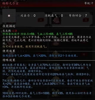 等到能学7级效果就可以带了。毕竟是游戏冠名心法,就算不主动使用,挂件效果也是顶级的。除了提供大量属性,对天机剑法来说重要的是用真气抵御伤害,加强调息,轻功使用后额外加集气和减CD这三点。
