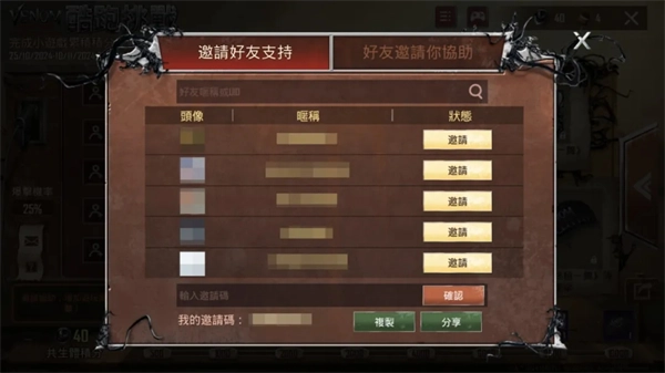 ●特种兵们可分享邀请码或在邀请栏邀请好友协助自己,每日最多邀请5位好友。