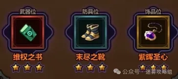 维权之书、末尽之靴(概率提升移速)、淬炼之符(持有秘法结晶时,每个结晶提供的伤害加成提升至30%),淬炼之符与紫晖可灵活替换。
