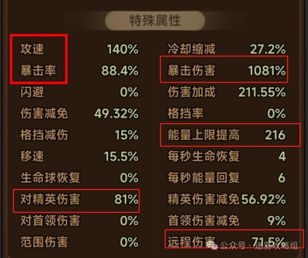暴击伤害、能量上限、毒素伤害、远程伤害