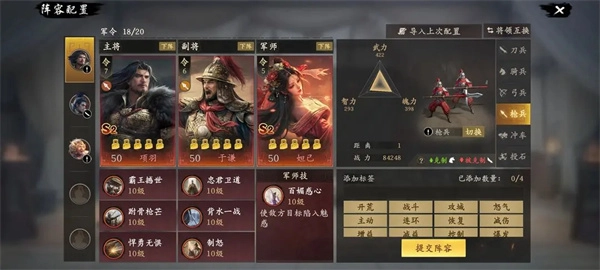 主将项羽肯定很好,没的话其他苏定方庞统也可以玩。