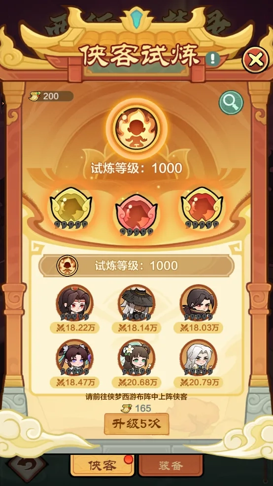 大侠们可通过赛季玩法中产出的[试炼谱]来提升赛季玩法内的侠客等级属性,