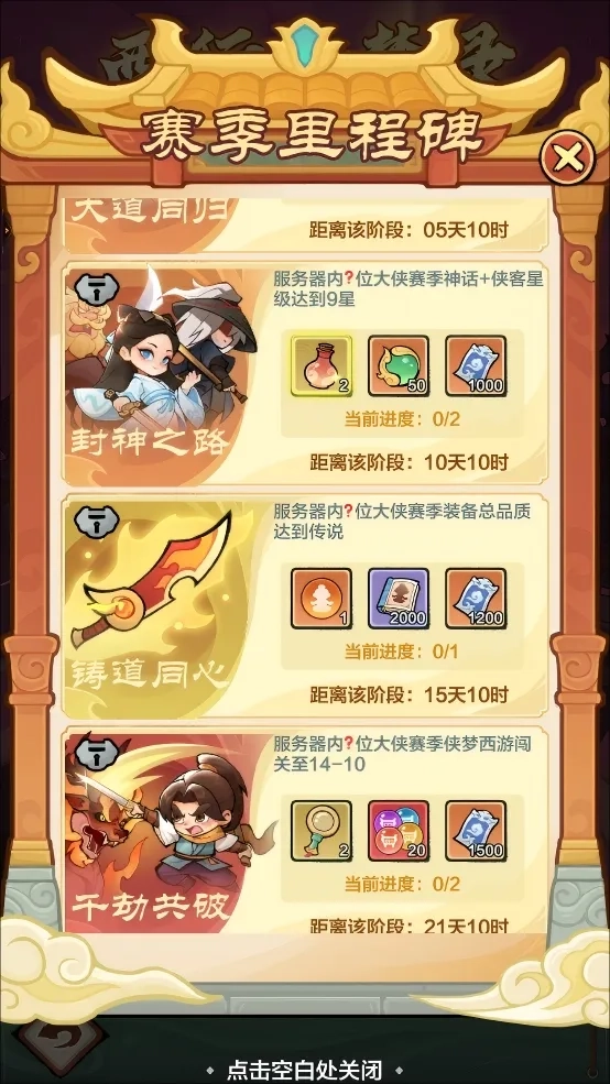 大侠们一定要注意自己的挑战时间并及时领取奖励哦~