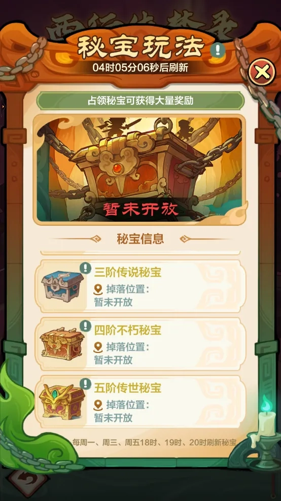 时间:秘宝将于每周的周一、三、五的18时、19时、20时刷新