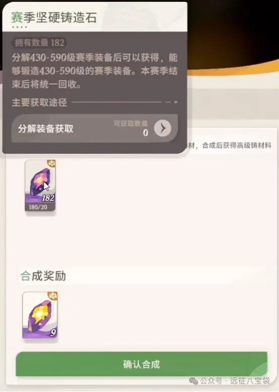 还可用做590级装备的赛季坚硬铸造石合成