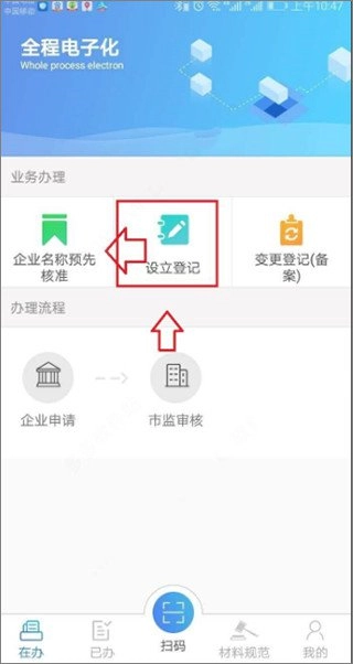 10、名称审核通过后,进入审理阶段,点击进入该阶段,输入企业监事及财务等其他信息并提交完成,企业注册即完成。
