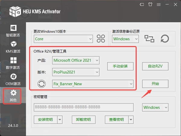 7、①点击【其它】;②选择产品为【Microsoft Office 2021】,版本选择【ProPlus2021】,类型选择【Fix_Banner_New】;③点击【开始】。