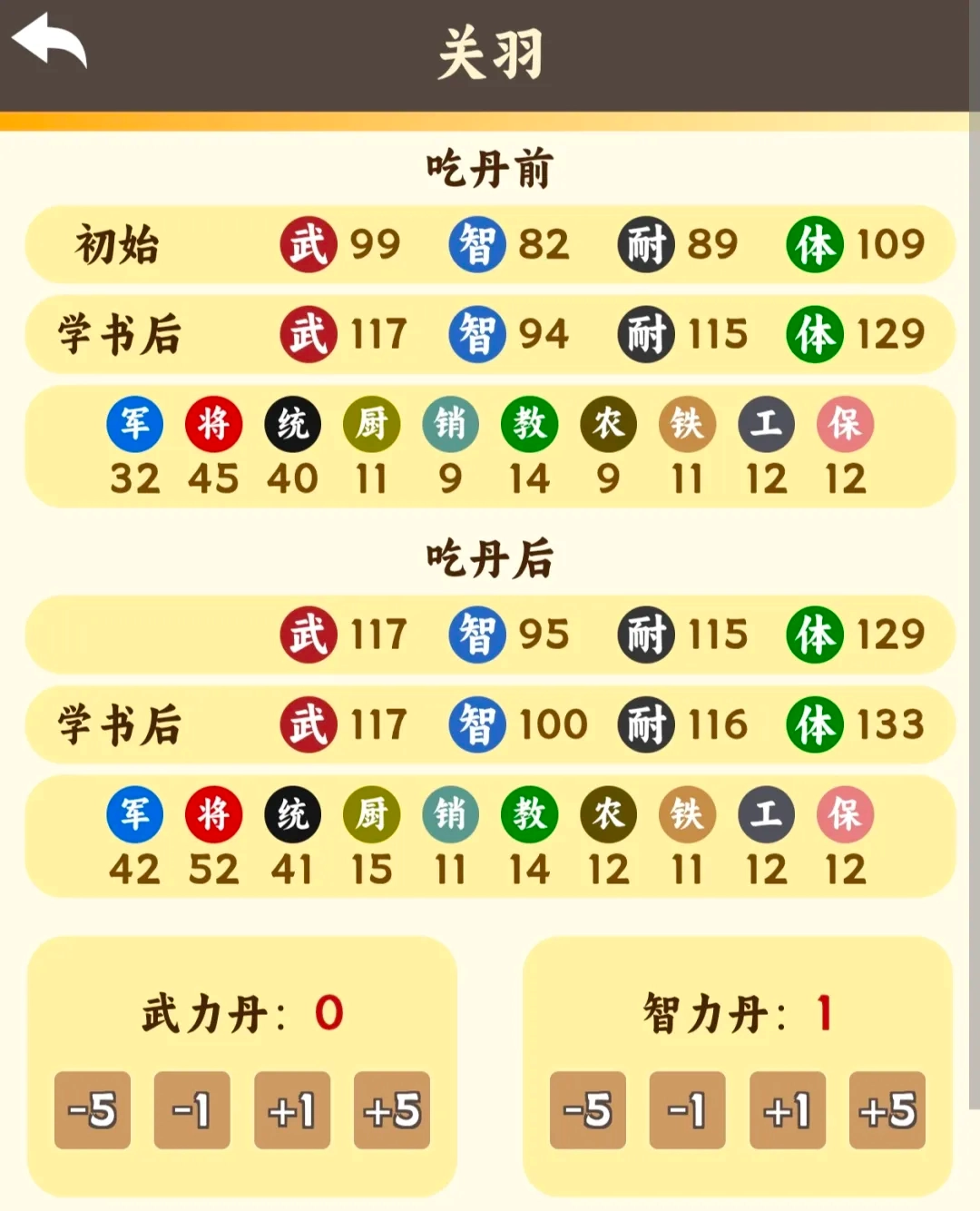 诸葛现在武力值是50,要提升到95的话,得吃45颗丹药。就算按40颗来算,也需要20个赛季,那可是整整五年时间啊。