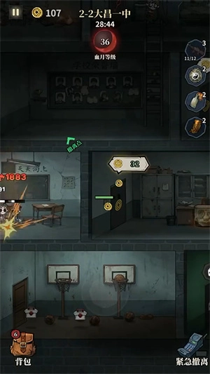操作要点:收集金币以及怪物掉落的增益词条(战力不够时要多获取),得找到钥匙来打开房门;要是遇到boss,可以选择通过走位躲避,或者提升伤害后再进行应对;整个过程都需要收集足够的金币,以保证能够顺利撤离。