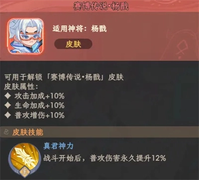 属性提升效果,有效增强杨戬自身的输出与生存能力。
