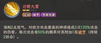 1、怒气技(2点怒气):刃劈九霄。