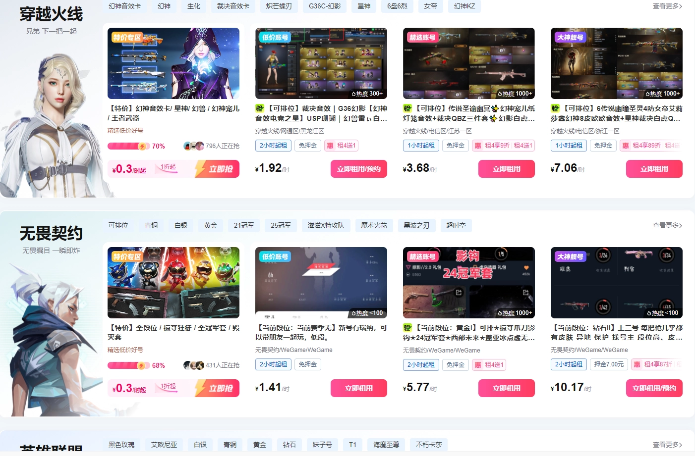 3、成功登录后就可以选择喜欢的账号进行租赁使用。