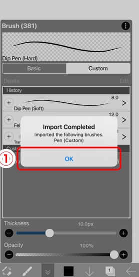 6、画笔导入已完成,点击 ①好 ,接着关闭窗口。