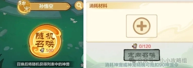 1、若想获取神宠,我们只能通过消耗100个神宠召唤令进行抽取。