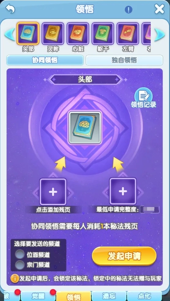 消耗残页进行“协同领悟”或“独自领悟”,都能获取相同部位的本体秘法。