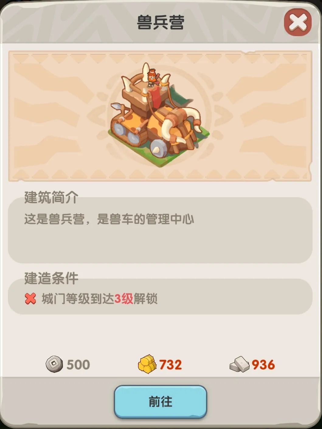 3)兽车是征战远古世界时十分实用的装载工具。当城门等级提升至3级、6级、12级时,会依次解锁一辆兽车。兽车的等级至关重要,它直接影响着英雄可携带的兽兵数量,以及在远古世界中的移动速度。此外,赛季古宝的收集也不能忽视,它能显著增强兽兵的攻击力与生命值。