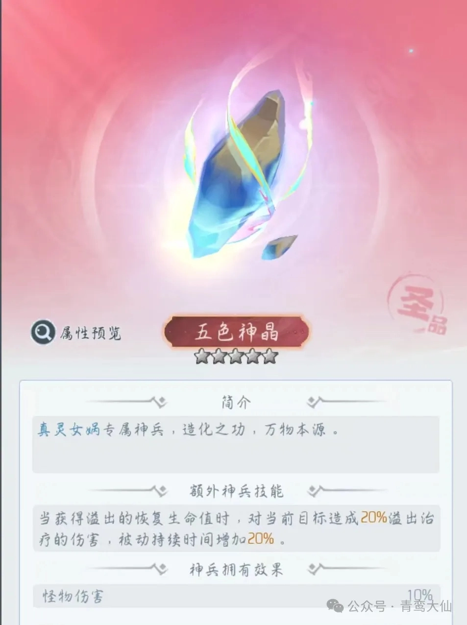 2、简单来说,拥有神兵后,溢出的治疗量会按照一定百分比转化为伤害。