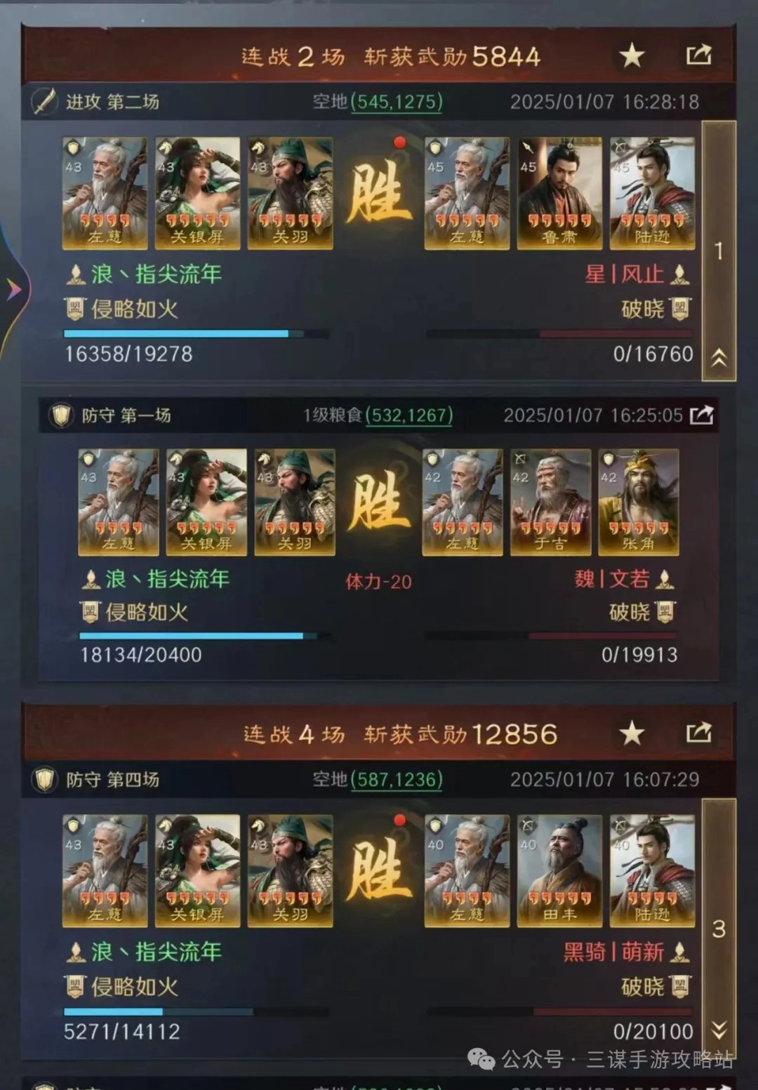 加点细节:左慈全智加点,关银屏全速加点,关羽全武加点(可根据战场环境适当提升速度)。