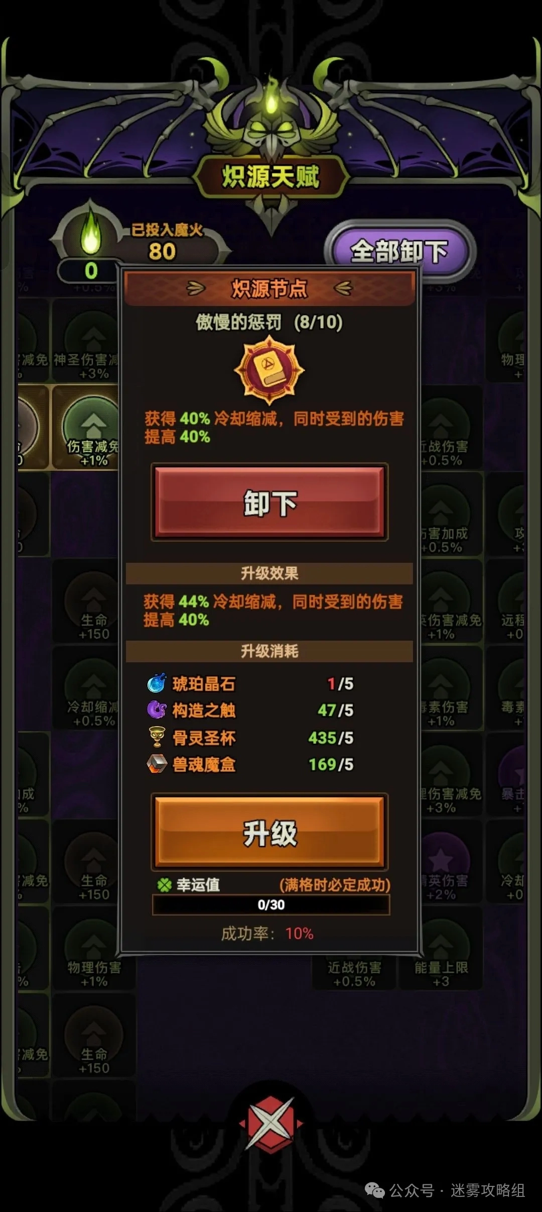 当傲慢等级到达5级时可以装备全部下掉冷却词条