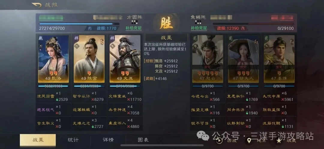 甄洛、陈宫的紫书选择给队友增伤类的,比如先勇、敌勇、备战这些;文丑的紫书则选慢战、胜敌、久战这类增伤类的。