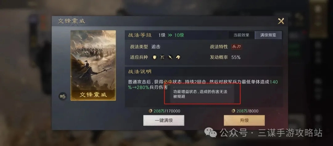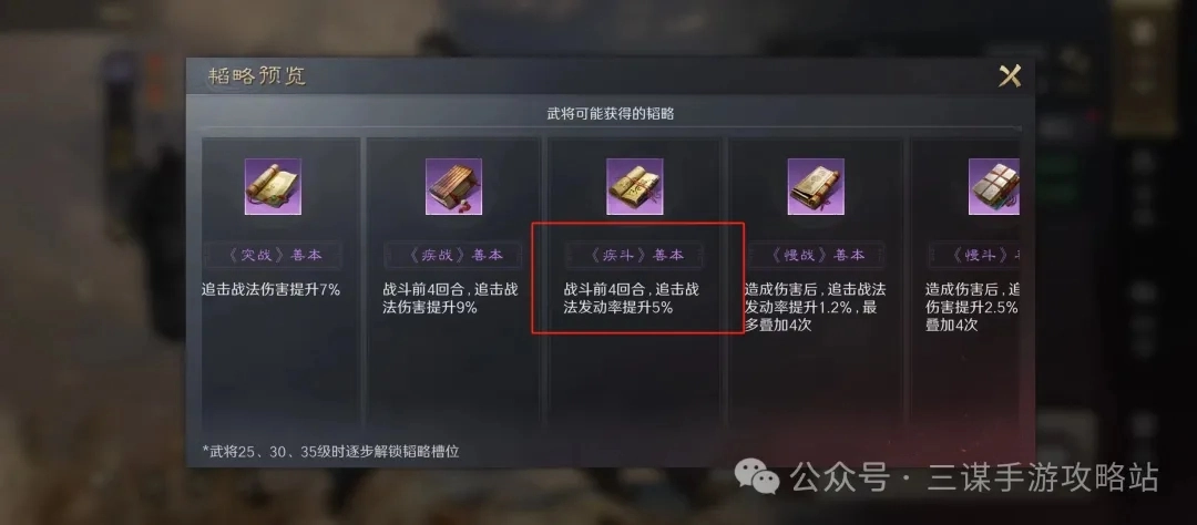 细节:文丑可以带一个疾斗兵书,尽快放出自带战法打出必中效果。