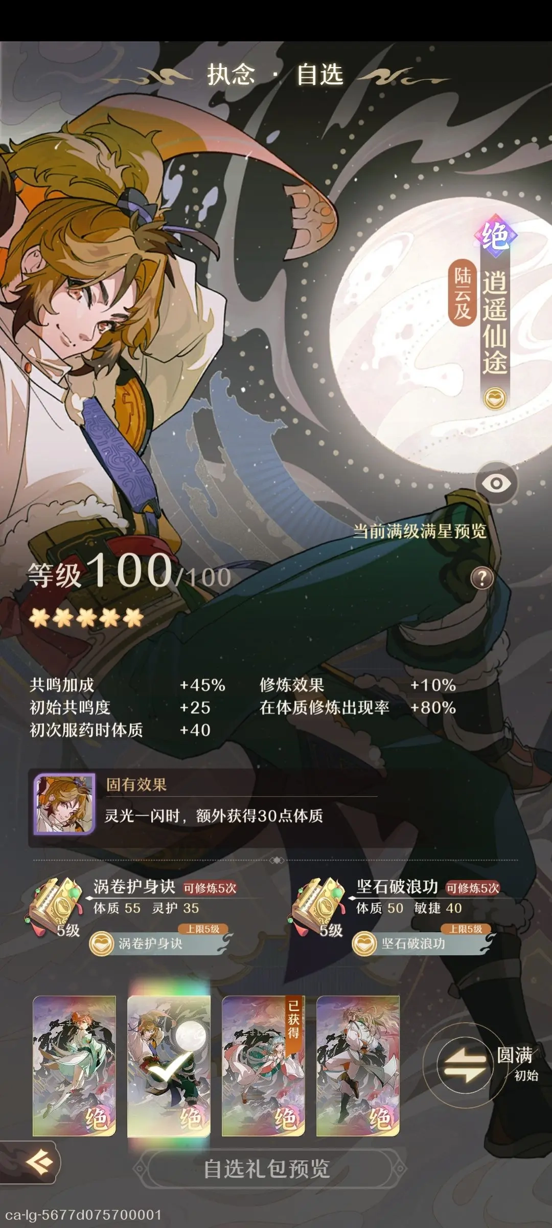 2、体卡:逍遥仙途,t0属性(+45,+10,+80),t3技能