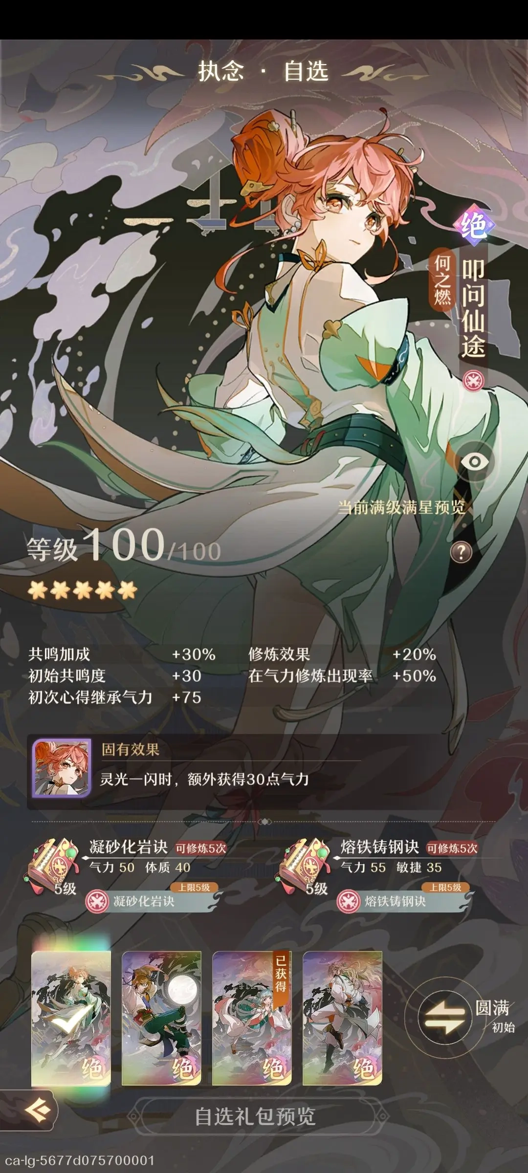 +30共鸣加成 +20修炼加成 +50共鸣概率