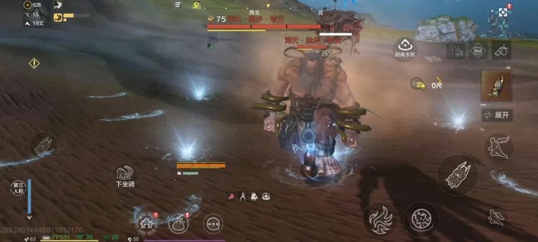 3、夸父的耐力被击破倒地后,会依据上一次葫芦是否被打破来进入狂暴或虚弱状态,该状态将持续到他下一次倒地,届时会根据当时的葫芦状态重新判定。若夸父处于狂暴状态,需注意选用破耐效率更高的武器和技能发起攻击,以快速触发新的判定。(狂暴状态下,常规技能的释放速度会加快,大招伤害也会提升;而虚弱状态则会解除最终伤害减免200的效果。)