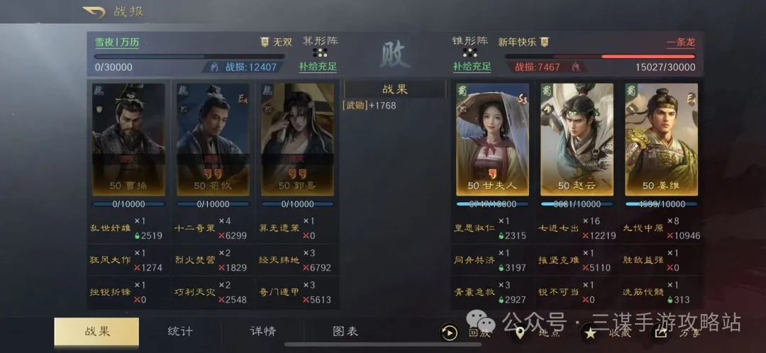 回归传统阵容搭配,选曹操加荀攸组合,结果没打赢赵甘姜;郭嘉带双准备技能输出节奏太慢,加上对手不吃控制,完全发挥不了作用。