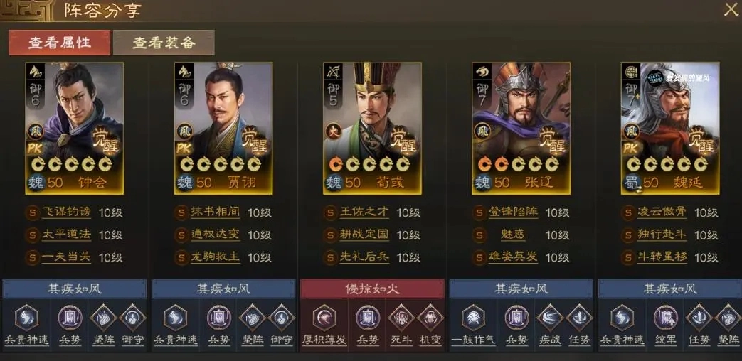 要是没有程昱,或者不想用他的话,用单马也完全可行,整体的带法和程昱的配法大致相同。这里给大家展示一下搭配钟会的配置,兵疲意阻对上CD基本就能满足需求,要是想带太平道法也没问题。