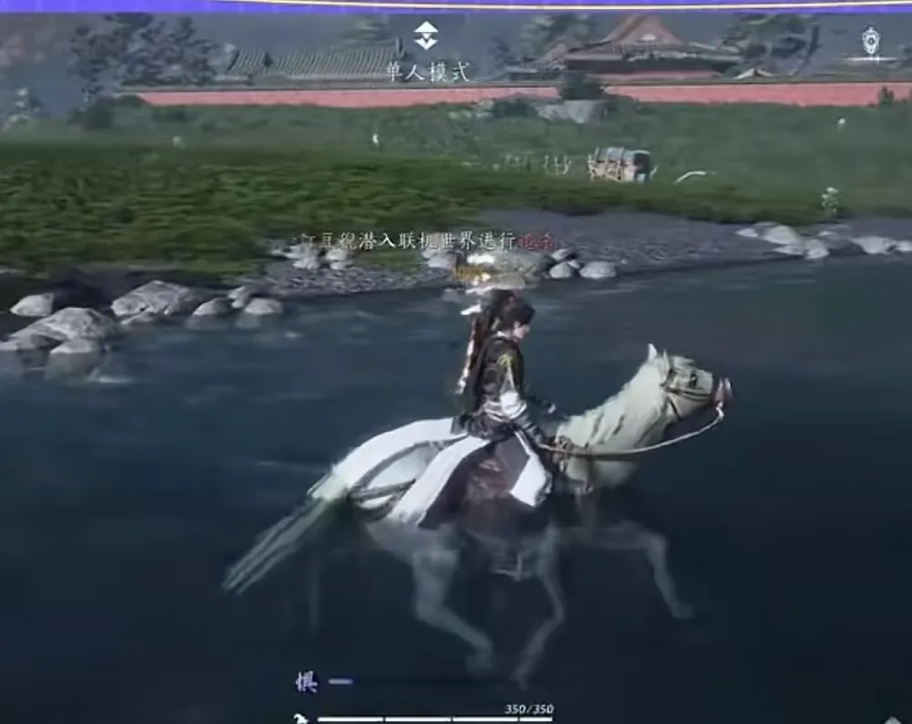 1、第一点:当你人物头顶突然出现橙色的你的名字提示“某某玩家进入联机世界抓捕你”时,别犹豫,立刻打开地图,选一个离湖泊最近的传送点传送过去,第一时间跳进水里——水里无法进行战斗,潜水也不消耗耐力,没氧气了就露头换气再马上潜下去。这时候扇子很关键,要是对方远程攻击你,你就给自己回血,还能在水下随意变换位置,哪怕是100级的对手进来也拿你没办法。