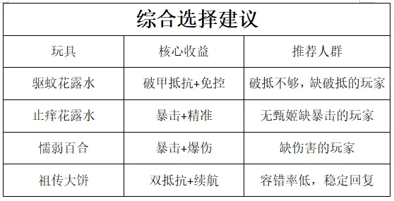 在《咸鱼之王》里,速刷十殿的成功与否,除了阵容配置要到位,玩具的挑选同样关键。目前比较常用的玩具有四种,具体选哪一种,得看大家阵容的薄弱环节是什么,按照弥补短板的原则来选就可以了!