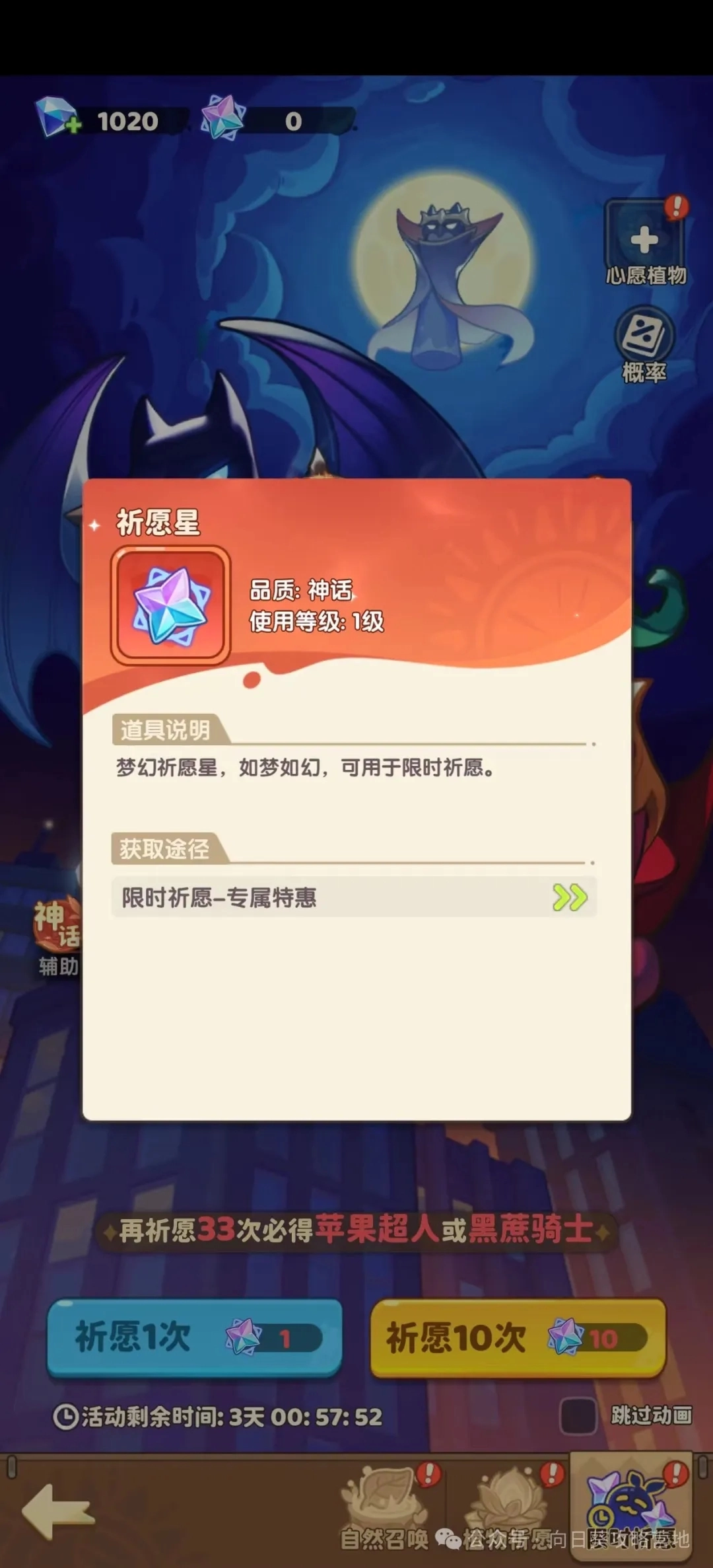 购买祈愿星的建议:用钻石购买20个祈愿星(首次限时祈愿结束后就不再购买了),这样能保证每次限时祈愿时都有100个以上的祈愿星。