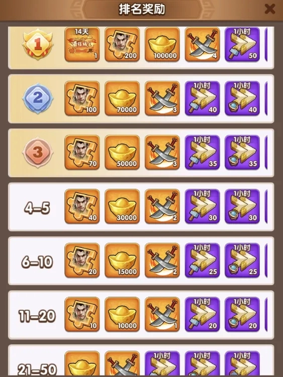 排名奖励一览