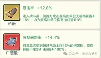 丘处机搭配燕语可提升暴击率,使用广陵散则能忽视暴击效果。