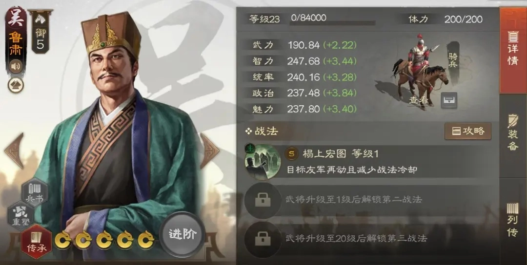 目前唯一的再动辅助,鲁肃还是比较通用的,一回合让友军行动两次压制力还是很强,配合强力输出队友,能让敌方快速减员。