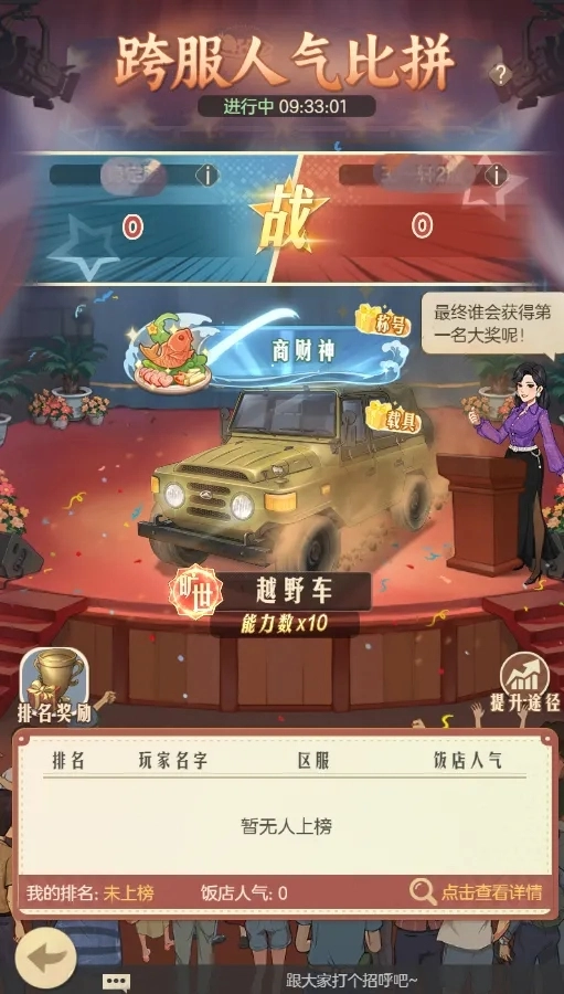 1、跨服饭店人气比拼