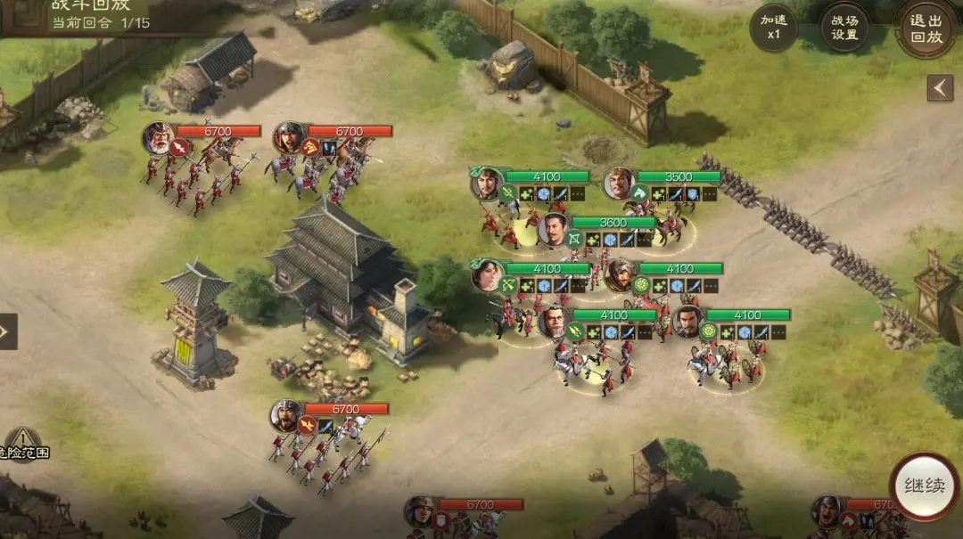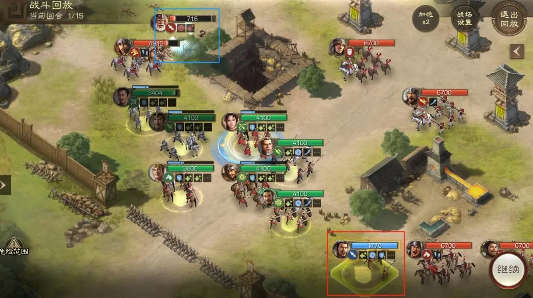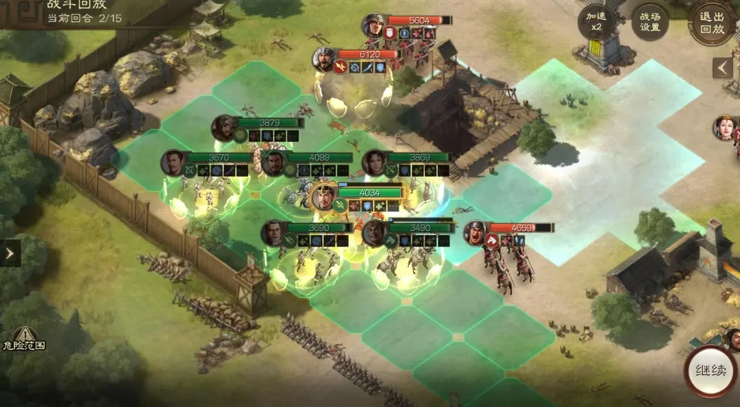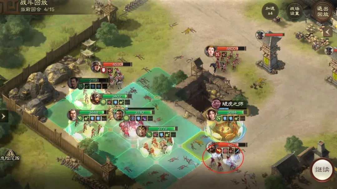 第四回合,你会看到徐盛的伤害被枪兵格挡,贾诩这回合继续控制吕蒙,接着用雄姿英发对一个单位进行输出就可以了,之后便无需在意他的存亡。