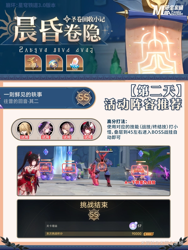 《崩坏:星穹铁道》的“晨昏卷隐”是3.0版本推出的剧情活动,玩法和之前某款战斗活动较为相似——先通过击败小怪积累增益效果,再挑战BOSS。该活动每天会解锁新关卡,且每关的增益类型与敌方阵容配置都各有差异,所以玩家需要根据实际情况灵活调整作战策略。