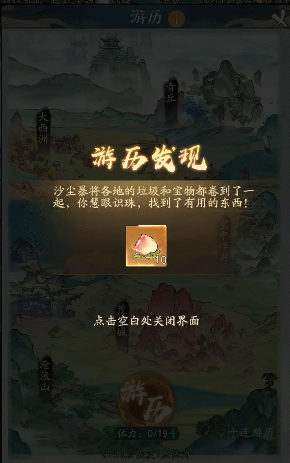 3、仙友游历(每天游历满大概300桃)