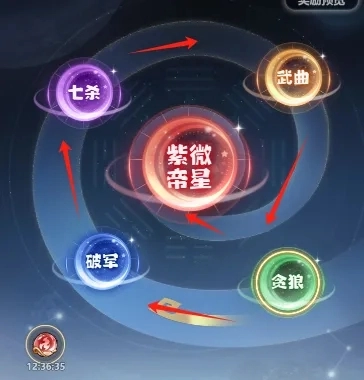 如下图所示,按照箭头指示的顺序,每进行10次抽取就有概率进入下一个层级,比如从贪狼到破军,再从破军到七杀。要是你已经到了七杀层级,可下一轮没能进入武曲,那就得重新开始!必须依次顺利通过贪狼→破军→七杀→武曲→紫微帝星这一完整流程,才能抽取到圣品。(中间只要有任何一环中断,就会重置层级),这就是小编说这个玩法比较看运气的原因啦。