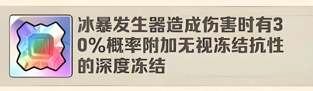 鞋子部位(绝世及以上品质):首次释放冰暴发生器命中 1 个怪物时,冷却时间大幅减少 80%,提高技能释放频率。