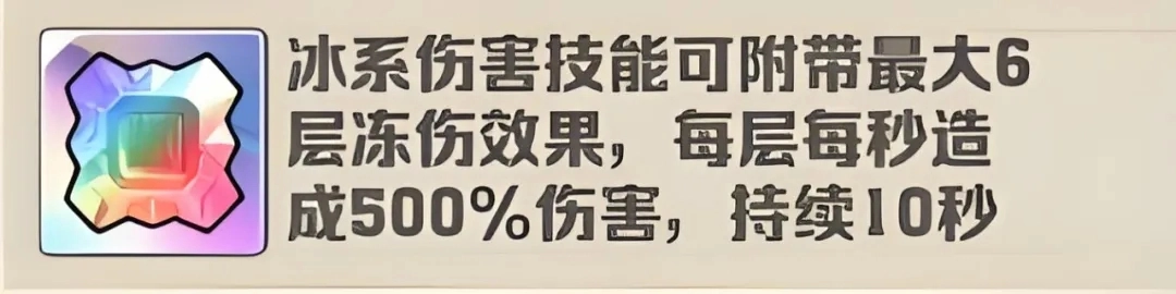 衣服部位(传说/绝世/至尊品质):冰系伤害会附带2/4/6层冻伤效果,每层冻伤每秒造成X%伤害,效果持续10秒,以此达成持续的冰系输出。